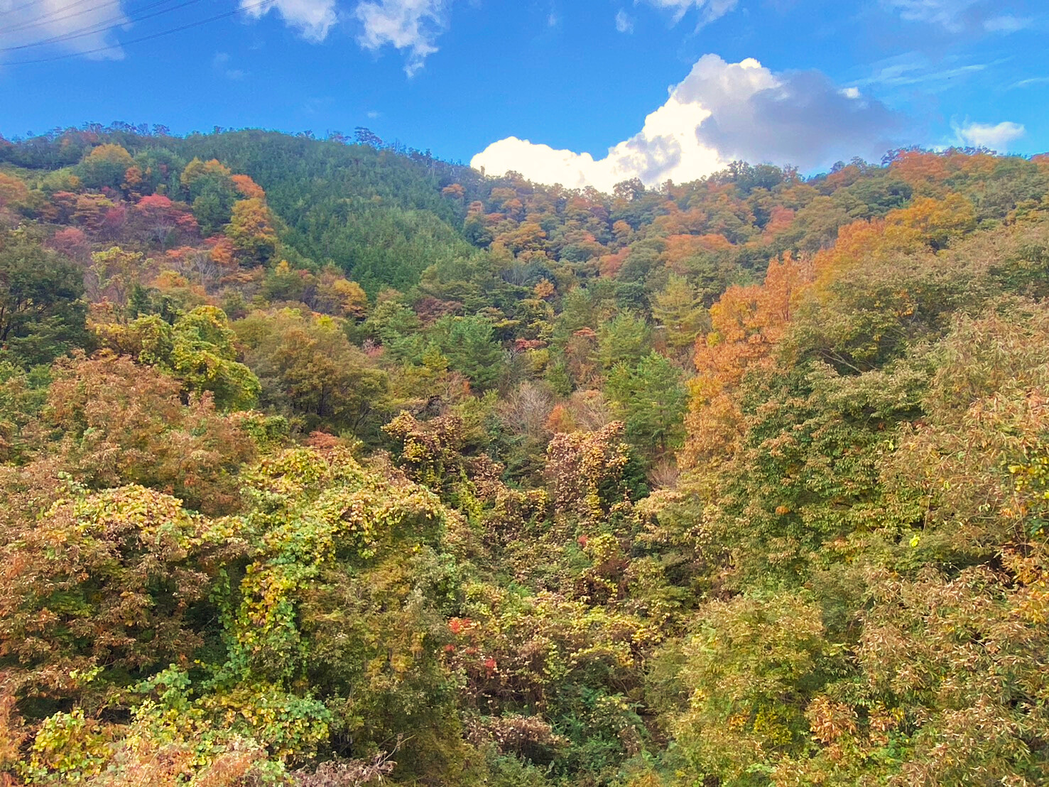 写真ではわかりづらいですが、大山全体が紅葉して赤っぽく見えています。