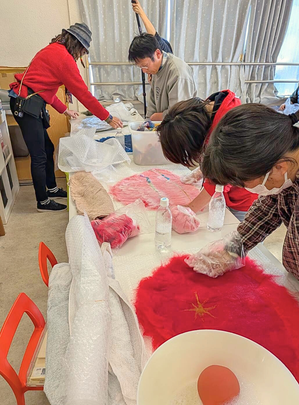 職員3人とメンバーさん3人で羊毛製品の研修に行ってきました。